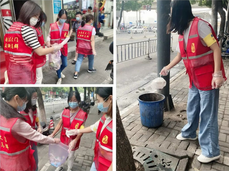 木蘭班的干部們領(lǐng)取了清潔所需的垃圾袋和手套。面對人行道上出現的垃圾,她們不怕臟累,一次次的彎腰撿起。煙頭、紙團等小型垃圾收集至垃圾袋中,快餐盒、椰子殼等大型垃圾則就近丟棄至垃圾桶內。