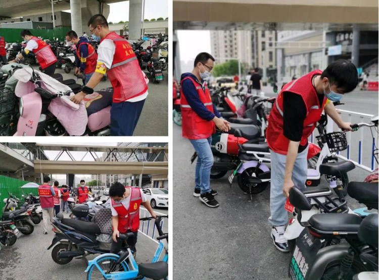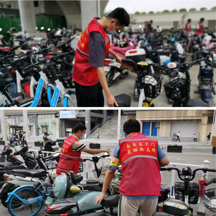 另一邊,元帥班和初心班的男干部也不甘示弱。面對停放雜亂的電動(dòng)車(chē),他們互相配合,合作整理,并引導正在停車(chē)的車(chē)主有序停放。原本略顯雜亂的停車(chē)區很快變得井井有條起來(lái)。