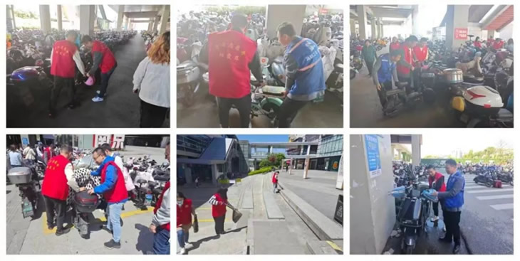參與活動(dòng)的黨員們積極參與到活動(dòng)中來(lái):面對人行道上出現的垃圾,他們不怕臟累,一次次耐心撿起,將煙頭、紙團等小型垃圾收集至垃圾袋中,大型垃圾則直接丟棄至就近垃圾桶;面對停放雜亂的電動(dòng)車(chē),大家則互相配合,合作整理,并引導正在停車(chē)的車(chē)主有序停放,讓原本略顯雜亂的停車(chē)區很快變得井井有條起來(lái)。