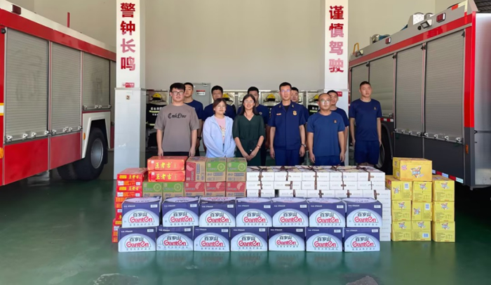 7月驕陽(yáng)似火,棲霞區消防大隊的消防戰士們仍冒著(zhù)酷暑奮戰在一線(xiàn)。7月27日,南京海陵藥業(yè)有限公司工會(huì )主席、安全環(huán)保部負責人等代表公司來(lái)到棲霞區馬群消防中隊進(jìn)行慰問(wèn),給奮戰在滅火救援前線(xiàn)的消防救援人員致以親切問(wèn)候,感謝他們對海陵消防工作的指導和關(guān)心,更感謝他們?yōu)槿嗣袢罕娕艖n(yōu)解難,并送去清涼解暑的水果、飲料、礦泉水,來(lái)緩解酷暑。消防隊員也對此次的到訪(fǎng)慰問(wèn)表示感謝。