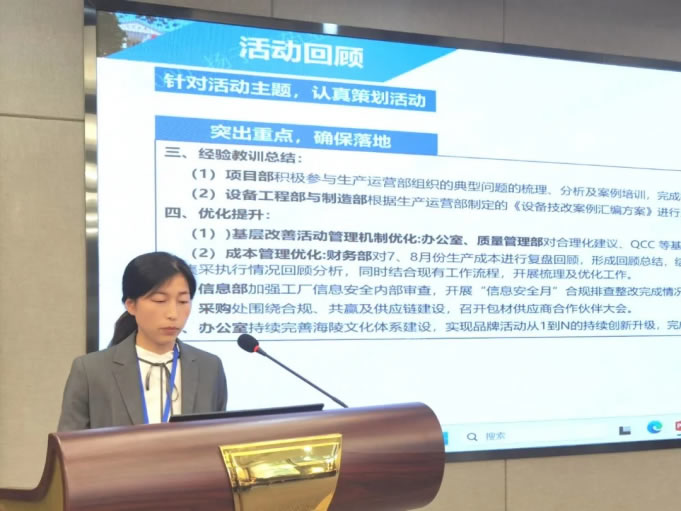 馮部長(cháng)對第三十六次“質(zhì)量月”活動(dòng)進(jìn)行總結發(fā)言。圍繞本次活動(dòng)內容、不足與改進(jìn)以及承上啟下內容進(jìn)行展開(kāi):1)在總結中,她通過(guò)正反面案例展示活動(dòng)期間各部門(mén)的亮點(diǎn)工作和不足;2)她強調要強化質(zhì)量月內容與標準模板的解讀,保證材料輸出的質(zhì)量;3)最后,她針對質(zhì)量管理部制定的崗位“放心人”選拔方案進(jìn)行解讀,希望大生產(chǎn)系統各部門(mén)能夠選拔更多的放心人,挖掘新生力量,推動(dòng)企業(yè)不斷成長(cháng)。