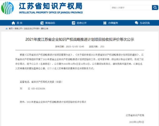近日,江蘇省知識產(chǎn)權局公示了江蘇省企業(yè)知識產(chǎn)權戰略推進(jìn)計劃項目驗收擬評價(jià)等次名單,南京海陵成功通過(guò)項目驗收,為企業(yè)高質(zhì)量發(fā)展奠定基礎。