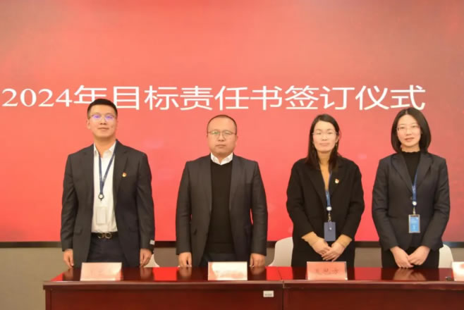 去歲萬(wàn)般皆如愿,今年萬(wàn)事定稱(chēng)心。會(huì )上,海陵工廠(chǎng)領(lǐng)導與各一級部門(mén)完成2024年目標責任書(shū)簽訂,吹響了向新一年前進(jìn)的號角。