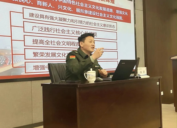 會(huì )議最后,海陵全體黨員及部門(mén)負責人進(jìn)行了二十大會(huì )議精神集體學(xué)習,陸軍工程大學(xué)“星火”理論宣講隊成員、陸軍工程大學(xué)政治工作系馬克思主義教研室副主任徐羿教授為全體參會(huì )人員進(jìn)行了二十大報告專(zhuān)題解讀,主要分為以下幾個(gè)方面: