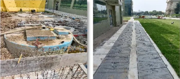 2022年6月,薛永峰開(kāi)始將自己設想的畫(huà)面細化落實(shí),項目正式立項。前期的調研設計工作是項目順利落地的保障。海陵草坪之下,是二十年來(lái)“勤懇”運行的暗管、電纜和壓力管道,盡管有圖紙可供參考,但畢竟年份久遠,實(shí)際的情況只有現場(chǎng)勘察才能確認。而施工方案的設計既要滿(mǎn)足海陵同步使用同步改造的需求,又需要便于后期對草品美觀(guān)度的恢復,使之符合廠(chǎng)區整體的環(huán)境風(fēng)格。薛永峰關(guān)注著(zhù)設計圖的每一個(gè)細節,并對設計單位提出改進(jìn)意見(jiàn)。項目進(jìn)度穩步推進(jìn)。