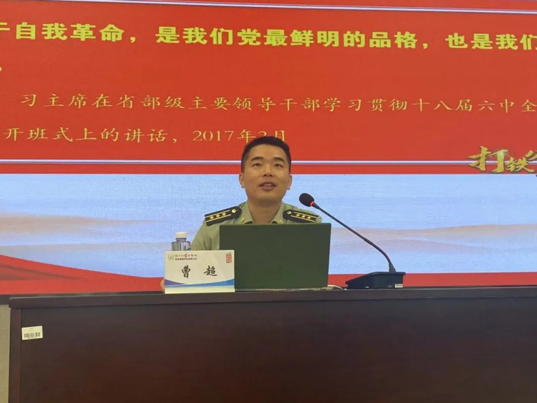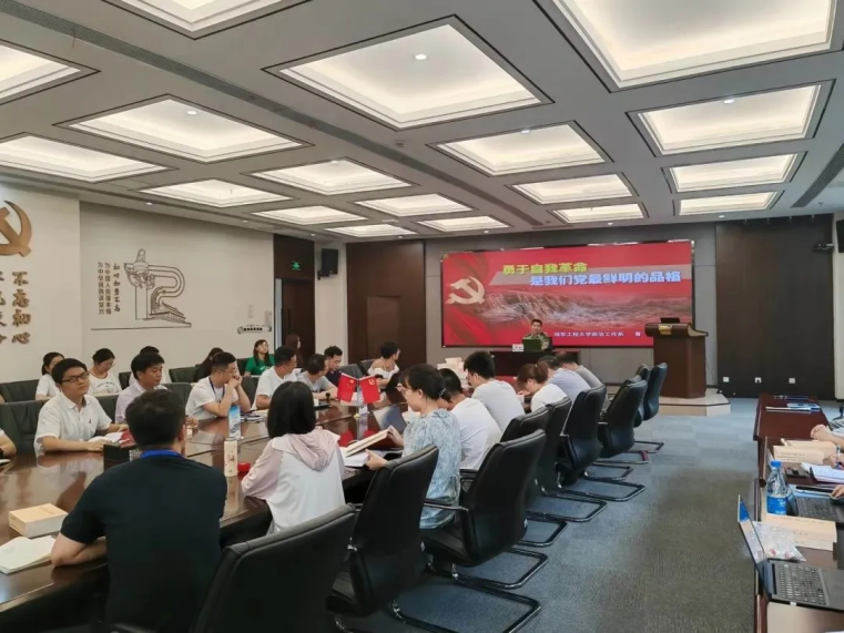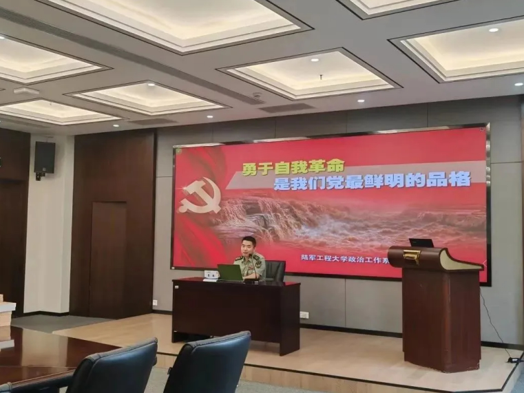 會(huì )議的第二項,全體與會(huì )人員進(jìn)行了專(zhuān)題黨課學(xué)習。陸軍工程大學(xué)政治工作系曹超副教授為大家進(jìn)行了主題為《勇于自我革命是我們黨最鮮明的品格》的專(zhuān)題匯報。曹教授肯定了海陵黨支部的凝聚力、戰斗力,并以黃培炎和毛澤東關(guān)于“如何跳出治亂興衰的歷史周期律”的探討為切入點(diǎn),從以下三個(gè)方面進(jìn)行了詳細闡述: