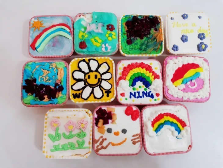 23日上午,大家共同體驗了盒子蛋糕和雪花酥的制作,打奶油、調顏色、畫(huà)蛋糕,過(guò)程中最興奮的當屬孩子們了,他們用奶油畫(huà)上了各自喜歡的卡通圖案,和家長(cháng)共同品嘗了自己的“甜蜜成果”。