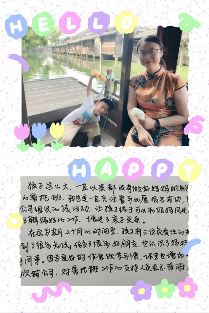 暑托班活動(dòng)不僅讓孩子們度過(guò)一個(gè)快樂(lè )充實(shí)的暑假,更是為海陵的員工解決了暑期子女無(wú)人看管的難題。讓我們一起來(lái)聽(tīng)聽(tīng)家長(cháng)朋友們的心聲吧~