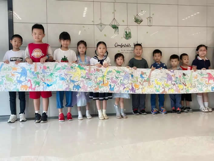 暑托班期間孩子們齊心協(xié)力,合作完成了一幅繪卷《恐龍世界》~在結營(yíng)儀式上,孩子們展開(kāi)長(cháng)卷,共同展示自己的成果,分享自己的感受。