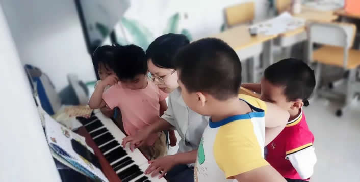 今年活動(dòng)期間,老師結合孩子們的喜好,開(kāi)發(fā)了音樂(lè )啟蒙系列課程。在一系列歌曲教學(xué)和音樂(lè )游戲中,孩子們邊玩邊學(xué),逐漸掌握了樂(lè )器、音符、音調、節奏、情緒等基礎樂(lè )理知識。
