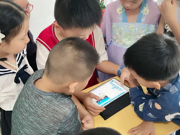 接下來(lái)是活動(dòng)期間最后的一次編程課,帶給大家精彩教學(xué)的不是老師,而是一位小朋友。他在老師的鼓勵和指導下,認真備課、練習,為小朋友們帶來(lái)一堂精彩的編程課《海底世界》。