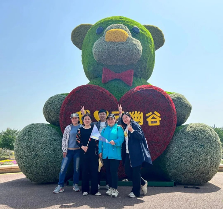 在景區入口拍攝了集體合影后,大家在隊長(cháng)們的帶領(lǐng)下,迫不及待地開(kāi)始參與第一項任務(wù)——小組創(chuàng )意合影。每個(gè)小組都發(fā)揮豐富的想象力,拍出了創(chuàng )意感滿(mǎn)滿(mǎn)的照片。
