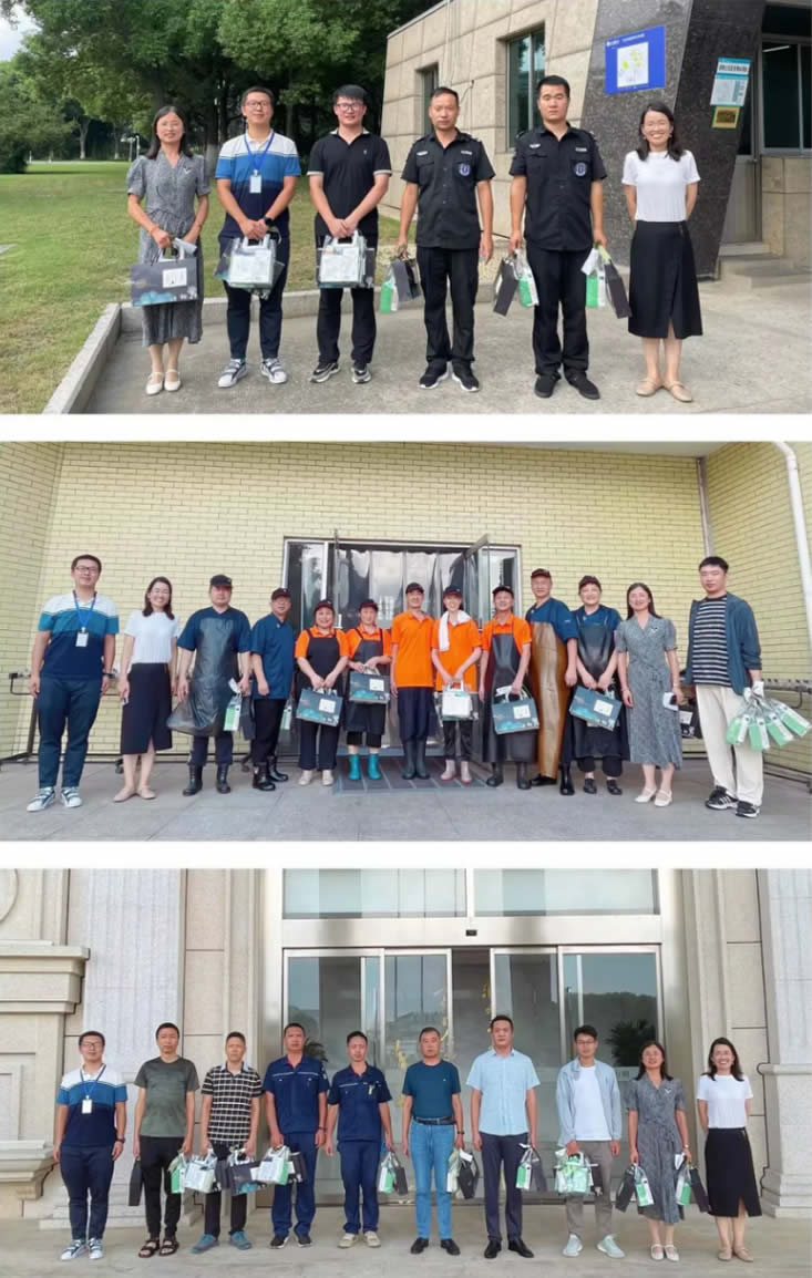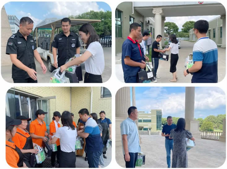 南京海陵黨支部書(shū)記李靜、南京海陵工會(huì )主席徐秋霞、南京海陵辦公室主任車(chē)越慰問(wèn)奮斗在一線(xiàn)的員工,為他們送上了防暑禮包及養生茶禮盒。