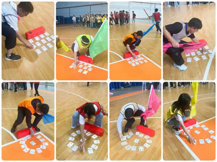 活動(dòng)正式開(kāi)始!“超音速”率先成為大家團隊磨合的項目。各隊成員你來(lái)我往,奮力奔跑。起先,大家還沒(méi)領(lǐng)悟到比賽訣竅,只是想著(zhù)自己以最快的速度往返翻牌。隨著(zhù)賽程推進(jìn),各隊紛紛意識到溝通的重要性,紛紛形成了以記錄員為圓心的“討論組”。隨著(zhù)各隊對牌面分布的逐漸明晰,比賽也進(jìn)入白熱化的“沖刺階段”,并很快角逐出排名!