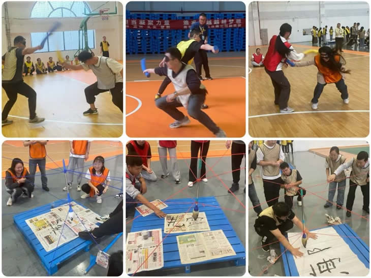 “華山論劍”要求團隊全員共同指揮一人,彼此競爭切磋。隨著(zhù)戰況的緩和激烈,時(shí)而寂然無(wú)聲,時(shí)而人聲鼎沸。勝負只在一瞬之間,現場(chǎng)隨著(zhù)精彩的對決而爆發(fā)出陣陣歡呼聲?!肮怖L藍圖”則要求一人指揮,全員合力達成目標。參與的成員不由自主地屏住呼吸,生怕自己的呼吸擾亂了正在書(shū)寫(xiě)的筆尖?!昂A辍薄罢\實(shí)”“守信”“高效”“扎實(shí)”“硬朗”。每一個(gè)團隊都緩慢而堅定地寫(xiě)下了自己所選擇的詞語(yǔ)。