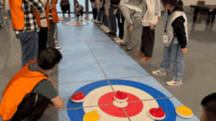 最后來(lái)到了大家期待已久的“冰壺大作戰”。旱地冰壺的投擲環(huán)節,既是技術(shù),也是戰術(shù),令人驚喜的是,各隊很快就擬定了“作戰方針”,隨著(zhù)賽程進(jìn)展,拉引擊球(Draw)、防衛擊球(Guard)、敲退擊球(Freeze)、晉升擊球(Promote)、射擊移位擲球(HitandRoll)等變換自如。大家在比賽中時(shí)而屏息凝神,時(shí)而拍掌喝彩,將團建活動(dòng)推向了高潮。
